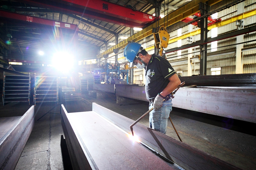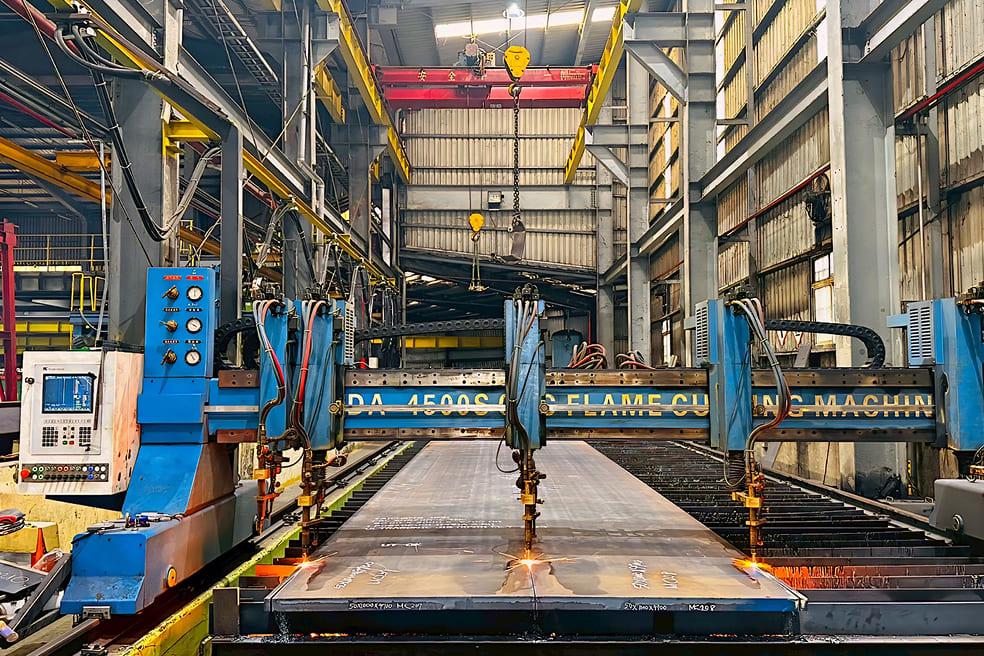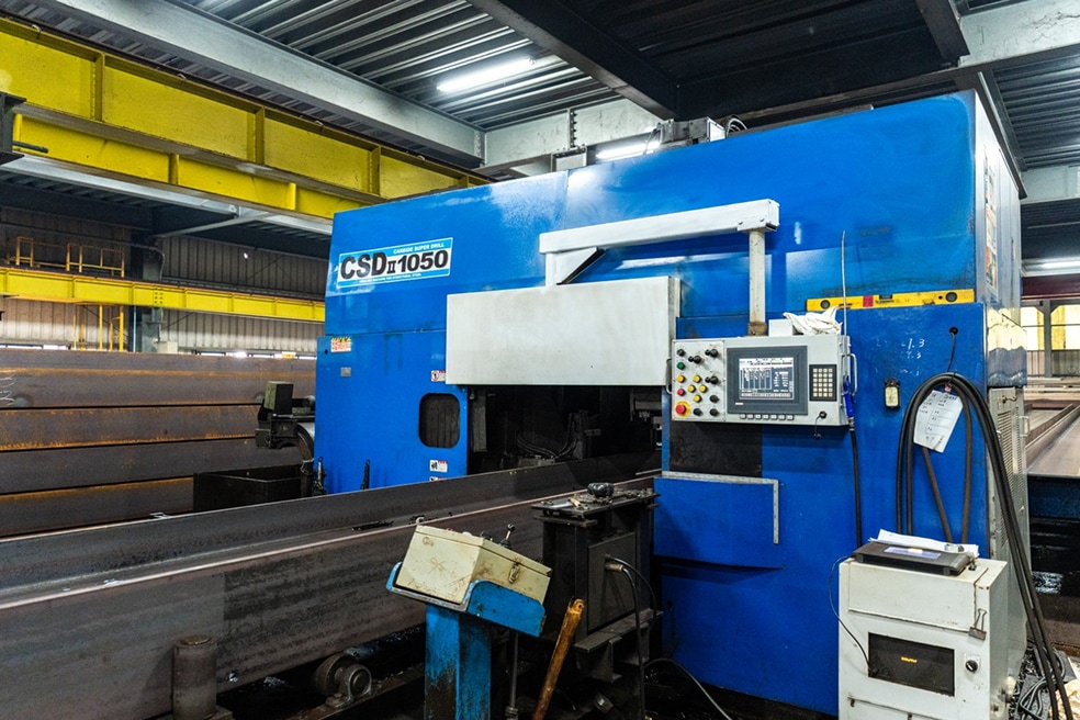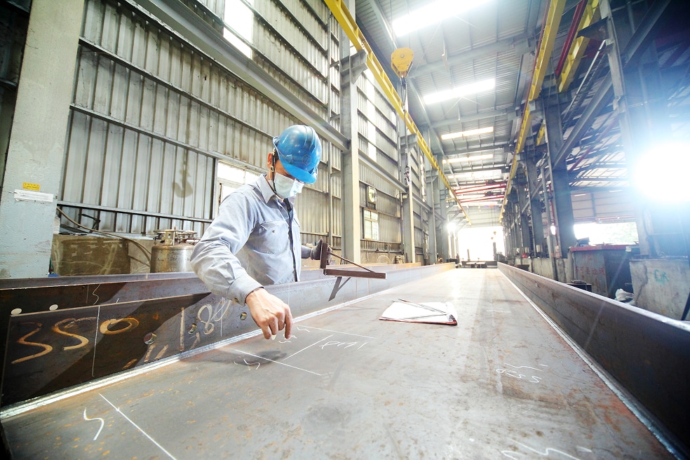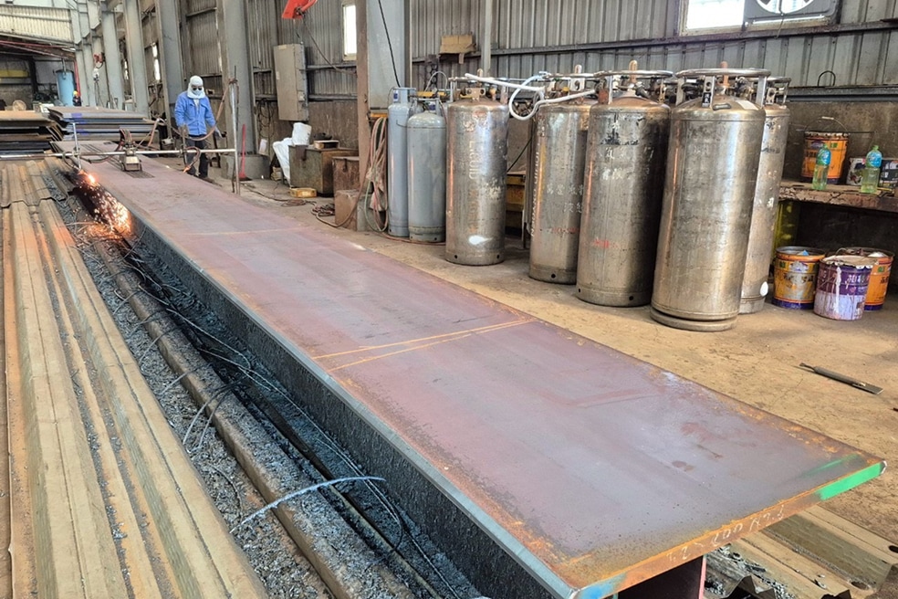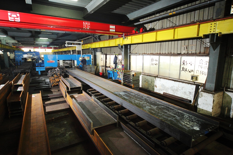 主要生產內容為: BH 鋼構一次加工、二次組立焊接。 設置 BH 組立矯正機、三軸鑽孔加工機、開先機、CNC 火焰切割機等設備。